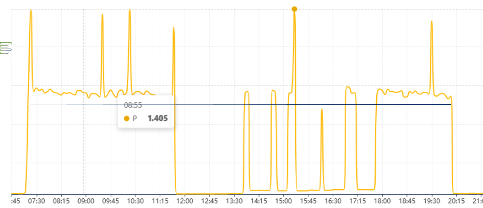 A számítás jellemzően a következőképpen működik: a mérő minden másodpercben rögzíti a teljesítményt. 60 leolvasás után ezeket az értékeket összeadják és elosztják 60-al, így egyperces átlagot kapnak. Ez a folyamat megismétlődik a keresleti intervallumon keresztül – például 15 egyperces átlagot összegeznek és osztanak 15-tel, hogy meghatározzák a kereslet értékét.