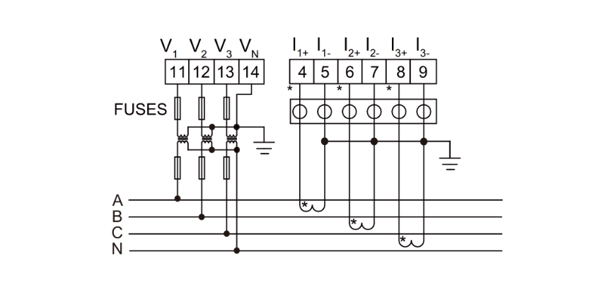 | Bemenet | Csatlakozás | Egyfázisú-2-vezetékes, 3-fázisú-3-vezetékes, 3-fázisú-4-vezetékes | ||