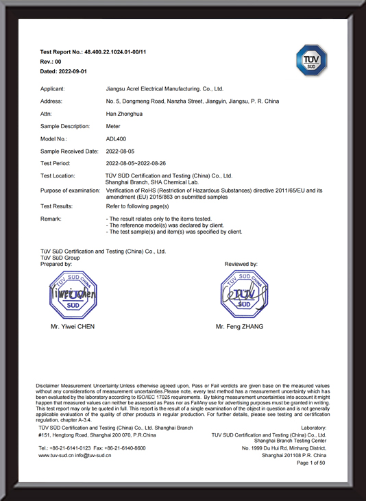 A vállalat gyártóüzeme, a Jiangsu Acrel Electric Manufacturing Co., Ltd. betartja a szigorú minőségi szabványokat és környezetvédelmi irányelveket, fejlett vizsgálóközpontokkal és az ólommentes gyártási folyamatok iránti elkötelezettséggel. Az Acrel több mint 500 mérnökből álló csapata élvonalbeli energiahatékonysági rendszereket és intelligens energiamegoldásokat szállít.