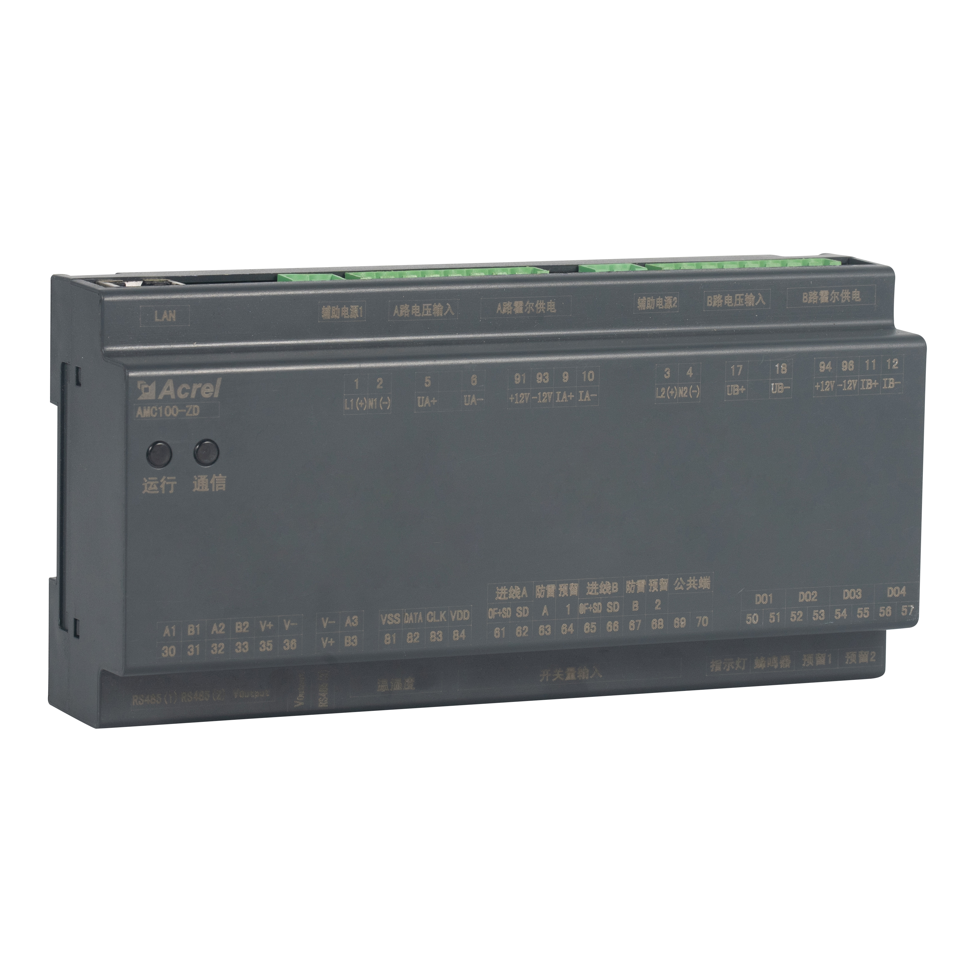 Az AMC100-ZD az Acrel DIN-sínes egyenáramú precíziós áramelosztás-felügyeleti egysége, amelyet adatközponti szerverállványokhoz terveztek. Egyidejűleg nyomon követi az A B kettős háromfázisú betáplálás, 192 kimenő áramkör, 8 DI / 4 DO állapotpont, 2 szivárgási csatorna, 1 hőmérséklet-páratartalom érzékelő és 63 harmonikus teljes elektromos paramétereit. Három RS485 Modbus-RTU port zökkenőmentes BMS/DCIM integrációt tesz lehetővé. Kompakt, 180 mm-es ház, ±0,5 %-os pontosság, csatornánkénti riasztási küszöbértékek és azonnali hangjelző figyelmeztetés csökkenti az energiapazarlást és az állásidőt, így ez a zöld adatközponti DC busway vagy PDU felügyeleti megoldások méretezhető szíve.