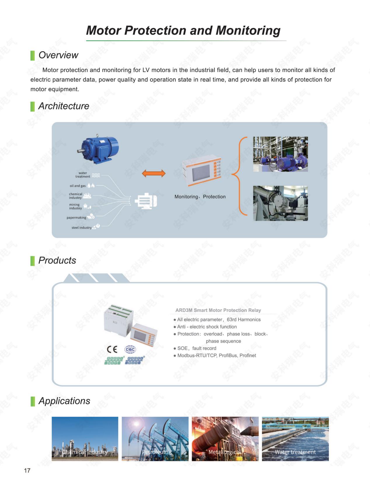 Az Acrel ARD2M egy többfunkciós motorvédő vezérlő, amelyet alacsony feszültségű motoráramkörökhöz terveztek. Eseményrögzítéssel, indításvezérlő funkcióval és programozható DI/DO-val rendelkezik a rugalmas motorvezérléshez. Támogatja a Profibus-DP kommunikációt, integrálja a rázkódásgátló funkciót a stabil működés érdekében, és analóg kimenetet tartalmaz a felügyelethez. Az ARD2M átfogó védelmet, pontos vezérlést és megbízható kommunikációt biztosít az ipari motorkezeléshez.