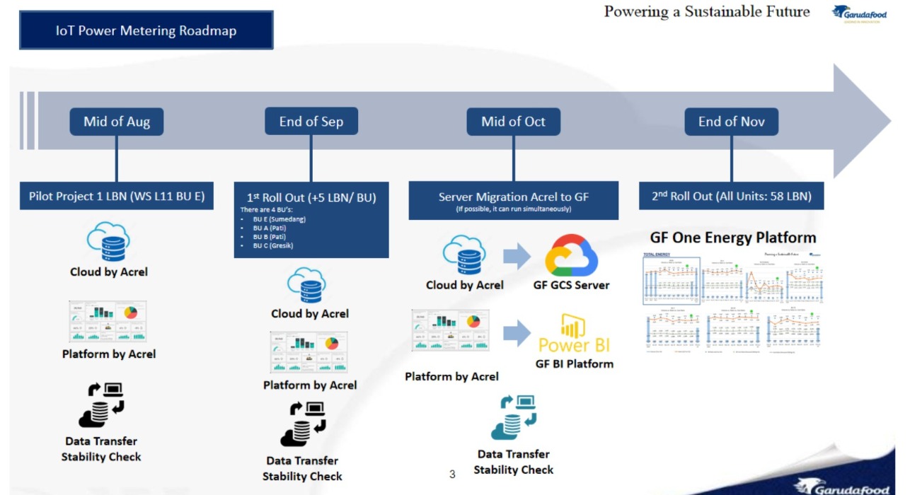 Az első élelmiszergyár Indonéziában, amely bevezette az Acrel felhőplatformot, energiamegtakarítást és kibocsátáscsökkentést ért el pontos energiafigyelés és -számítás révén, nagymértékben csökkentve a költségeket és reformhullámot indított el az indonéz élelmiszergyárakban, etalonsá vált az indonéz élelmiszeripar vállalatirányításában